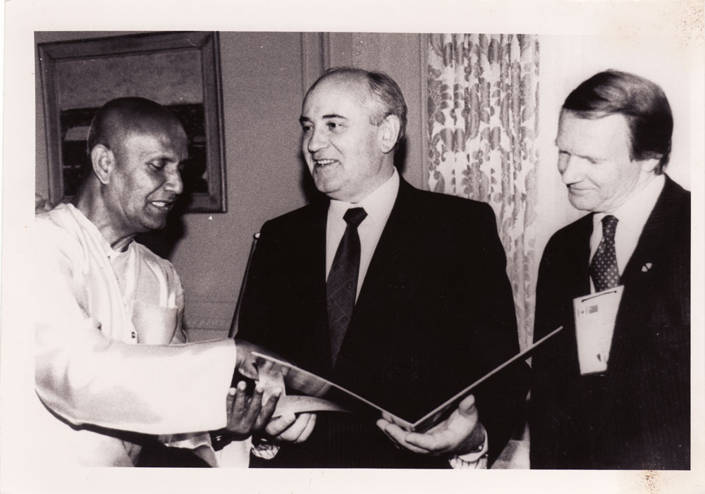 In July 1991, Sri Chinmoy met President Gorbachev during a private meeting at the London economic summit. President Gorbachev accepted a book honouring his achievements, entitled Gorbachev: The Master-Key Of The Universal Heart.